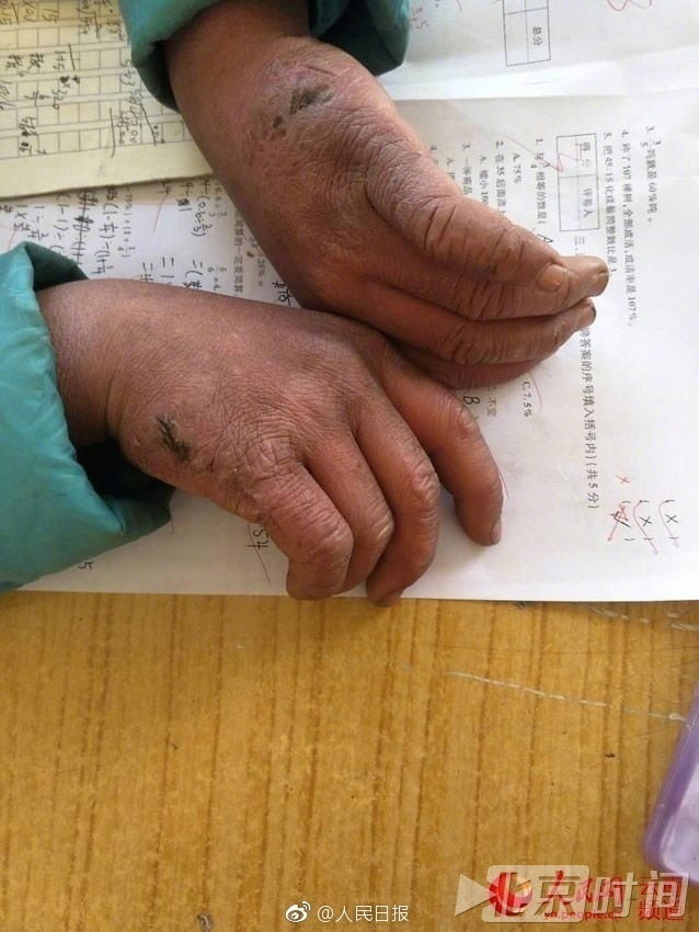 “当天早上气温是零下九度,是期末考试的第一天,气温是在半个小时内降下来的,他家离得远因此到教室后头发都沾满了风霜。小孩子比较可爱,到班级后做了个怪怪的鬼脸,引起了班级同学的大笑。”付校长说。