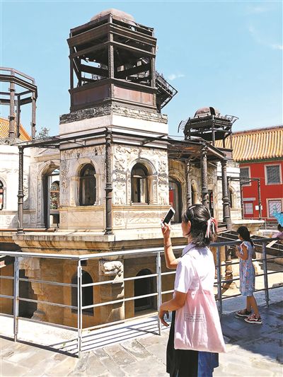 为了给游客提供更好的游览体验,故宫博物院还专门在延禧宫前竖立了一块标志牌,并在上面发布了延禧宫内主要建筑——灵沼轩的虚拟现实体验二维码,游客扫描二维码后,就可以通过手机全景观看灵沼轩修复后的样子。一名体验过虚拟观看的网友表示,通过对比建筑的原本设计和现存遗址,更能够感受到历史的兴衰、时间的更替,“特别感慨。”